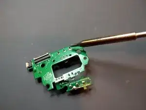 Пока тянете микропереключатель от платы, нагревайте его три контакта. Переключатель должен отойти.