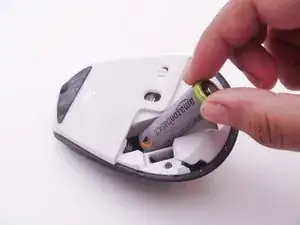 Снимите наклейку под батареей, чтобы получить доступ к небольшому винту с крестообразной головкой под ней. На моём экземпляре мыши наклейка уже была снята, поэтому на фотографиях она не показана