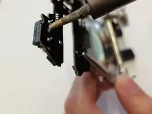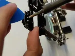 Продолжайте нагревать выводы микропереключателя, поддев переключатель медиатором для вскрытия.