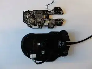 Снимите 3-контактный разъём оптического энкодера колёсика прокрутки с основной платы, покачивая разъём вверх.