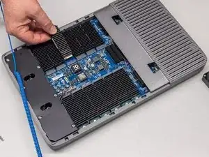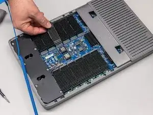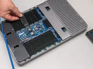 Вытяните модуль SSD вверх и в сторону от его порта, чтобы снять.