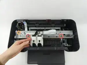 Поднимите всю сборку каретки подачи чернил и извлеките её из принтера.