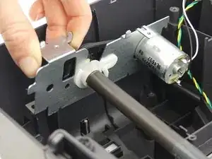 Удалите два винта 13 мм, которые фиксируют раму мотора ролика подачи бумаги.