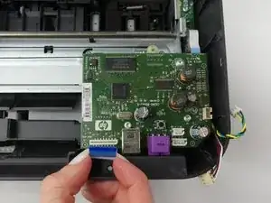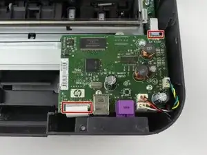 Найдите и отсоедините два плоских ленточных разъема, которые подключают плату к другим компонентам принтера.