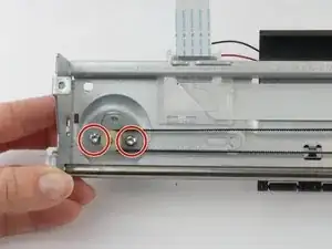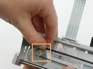 Снимите ремень с круглой шестерни мотора, затем извлеките мотор каретки чернил.