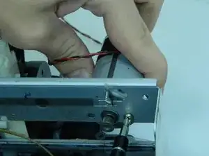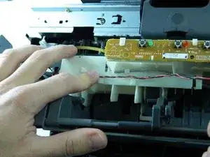 Аккуратно потяните пластиковый корпус вверх, чтобы снять заднюю панель и получить доступ к внутренним компонентам принтера.