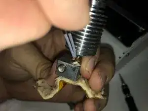 Оттяните изоляцию, пока не получите доступ к установочному винту в нижней части нагревательного блока.