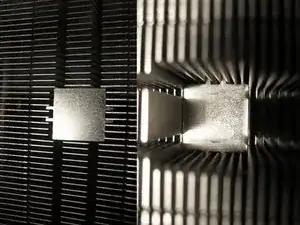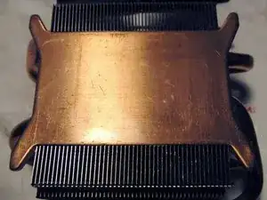 Тщательно очистите основание радиатора, которое будет контактировать с процессором. Не должно остаться следов старой термопасты.