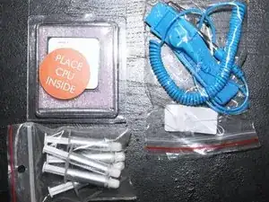 Снимите крышку корпуса, прищепите крокодил клипсы антистатического браслета к неокрашенной части металлического корпуса, наденьте браслет на запястье, предпочтительно на левое, если вы правша.