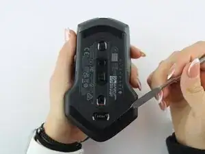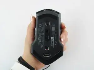 Снимите защитную пленку с новой ножки мыши. Выравните ножку мыши с указанной областью на мыши. Прочно прижмите, чтобы зафиксировать на месте. Повторите шаги для нижней ножки мыши.