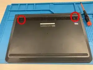 Найдите выемку на задней крышке посередине между двумя винтами с крестовой головкой.