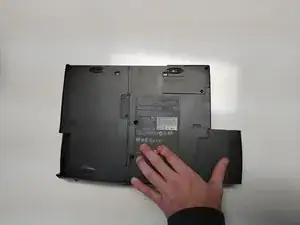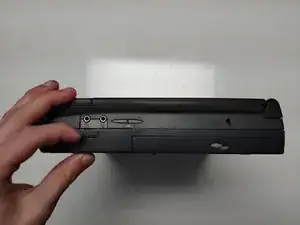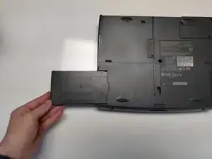 Вытащите батарейный блок наружу и от корпуса ноутбука.