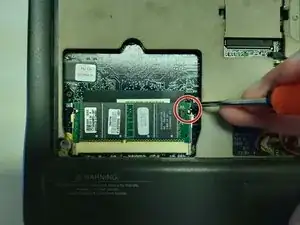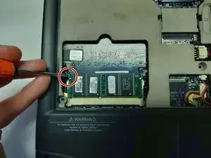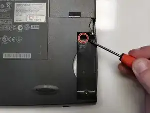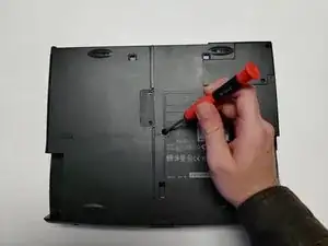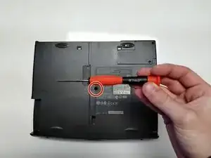 Отверните один торкс-винт 4 мм, расположенный в центре нижней части ноутбука.