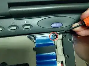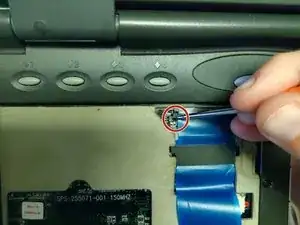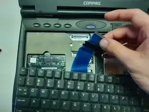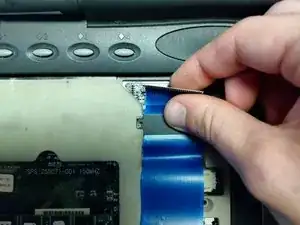 Отодвиньте клавиатуру от синего ленточного разъёма.