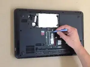 Используйте пластиковый инструмент, чтобы открыть защелки модуля памяти.