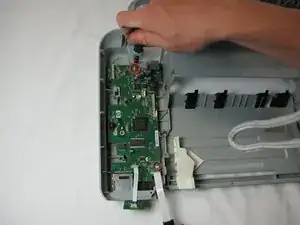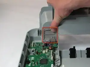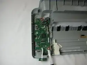 Будьте осторожны, так как узел ролика подачи теперь ослаблен, но всё ещё прикреплён к корпусу принтера.