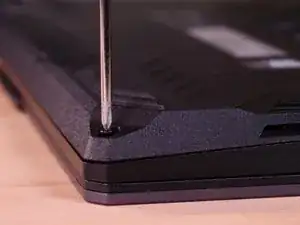 Как хорошая практика, убедитесь, что вы отключили аккумулятор ноутбука, используя отвертку с плоским шлицем или ноготь, чтобы вытолкнуть разъем аккумулятора из гнезда.