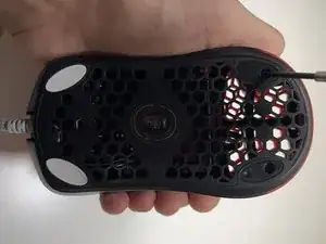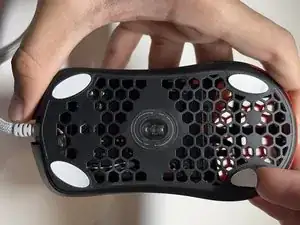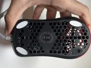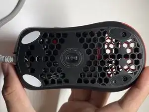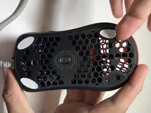 Шаги 2 и 3 включают снятие ножек мыши. Будьте осторожны, чтобы не создавать, не сгибать и не складывать линии на этих ножках, так как они будут ощущаться при перемещении мыши. Отклеивайте их медленно.