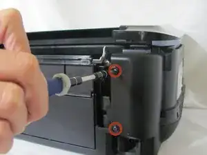 Снимите четыре чёрных винта на задних панелях с левой и правой стороны.