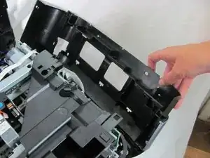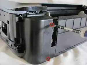 Сканер по-прежнему будет прикреплён проводами с правой стороны. Бережно обращайтесь с деталью, не тяните её резко от основного корпуса принтера.