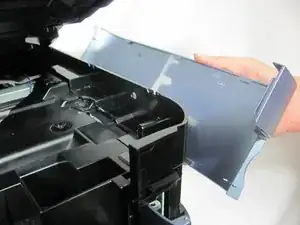 Снимите сканер, выдвинув боковые панели до освобождения штифта сканера. Отложите сканер в сторону.