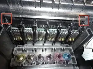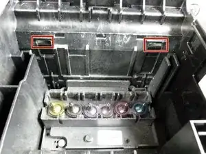 Протянув руку сзади каретки, отожмите две защёлки, удерживающие сборку CSIC на месте.