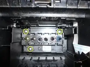 Удалите три винта Phillips #2 длиной 8 мм, которые закрепляют печатающую головку.