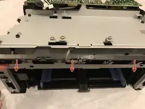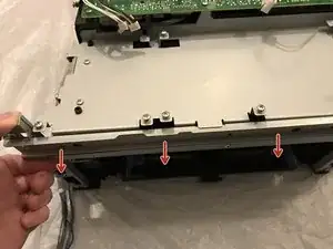 Отверните оба крестообразных винта M3 5 мм, крепящие кронштейны верхней крышки к шасси.