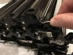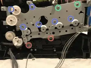 Оттяните держатель шестерёнок и снимите его с принтера.