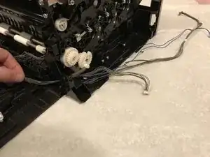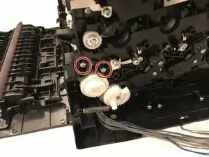 Оттяните узел внешнего держателя шестерёнок от принтера и снимите его.