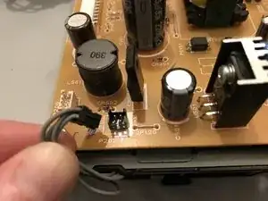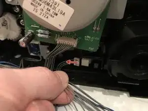 Вытащите разъём датчика задней крышки с платы блока питания.