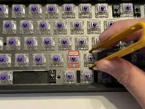 Используйте съемник колпачков, чтобы снять колпачки клавиш с клавиатуры.