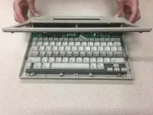 Поднимите экран и материнскую плату, чтобы отделить два компонента.