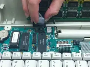 Чтобы удалить шлейф, используйте лопатку, чтобы поднять каждую сторону разъема от гнезда.