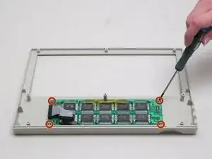 Смотря на переднюю панель, используйте отвертку Philips #00, чтобы удалить четыре винта с головкой Philips длиной 0,8 см из каждого угла материнской платы дисплея.