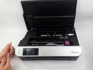 Панель удерживает экран на месте. Прежде чем снять панель, убедитесь, что принтер отключен от сети.