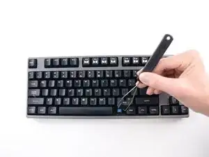 Снимите клавишную накладку с клавиши, переключатель которой нужно заменить, следуя руководству по замене малых клавишных накладок или руководству по замене больших клавишных накладок.