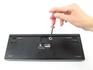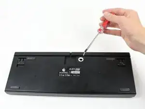Используя отвёртку Phillips #0, удалите винт длиной 0,5 см с задней стороны клавиатуры.