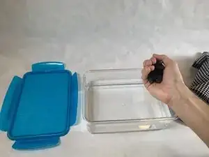 Добавьте 2 капли жидкого моющего средства для посуды в наполненный водой контейнер.