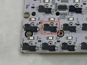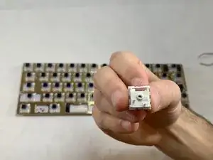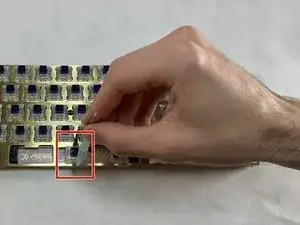 Никогда не давите в направлении, отличном от строго вниз. Легко повредить как печатную плату, так и переключатель на этом шаге. Не раскачивайте и не сгибайте переключатель.