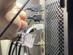 Местоположение кабеля зависит от того, как вы подключали клавиатуру к ПК. (В моём случае она подключена на задней панели компьютера рядом с кабелем Ethernet).