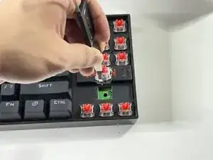 Тяните неисправный переключатель строго вверх, чтобы извлечь его из клавиатуры.