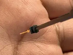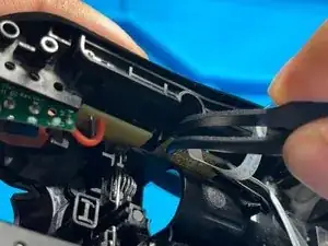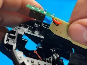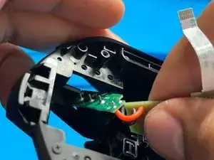 Напомним: плата переключателя мыши удерживается платой боковых кнопок. Теперь, когда боковую плату отвинтили, используйте пинцет, чтобы извлечь её из гнезда.