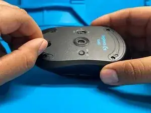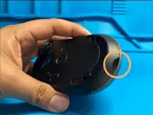 Начните с того же места, что и в предыдущем шаге, и аккуратно подденьте основание от корпуса мыши большим пальцем.