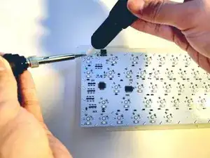 На шагах 3 и 6 в руководстве требуется отпайка и запайка переключателей клавиш на плате.