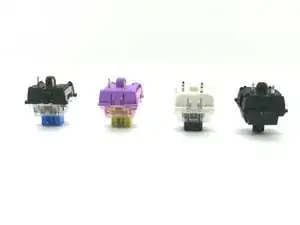 На фотографиях переключатели слева совместимы с этой клавиатурой, тогда как переключатели справа не совместимы из‑за их немного более толстых контактов.