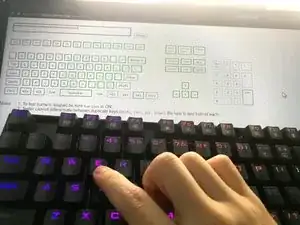 Вставьте переключатель обратно в клавиатуру, поместив переключатель так, чтобы прямоугольное отверстие было направлено вверх, а логотип Redragon — вниз относительно окружающих переключателей.