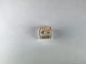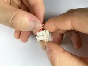 Чтобы снять переключатель, найдите два фиксатора корпуса переключателя в верхней и нижней части, удерживающие его в плате клавиатуры.