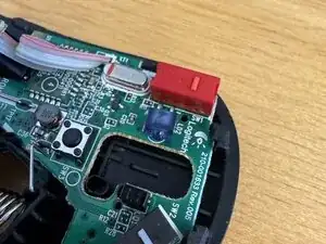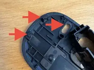 Снимите верхнюю крышку мыши. Она не удерживается кабелями.