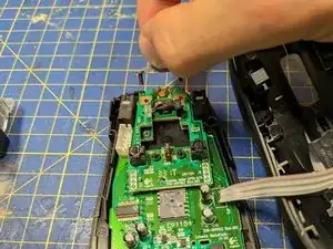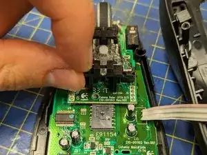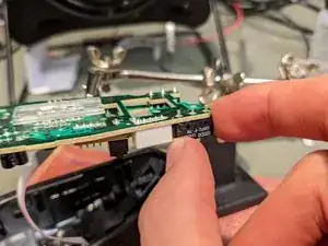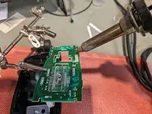 Выньте старый переключатель из его отверстий. Возможно, потребуется ослабить оставшиеся капли припоя паяльником при вытягивании.
